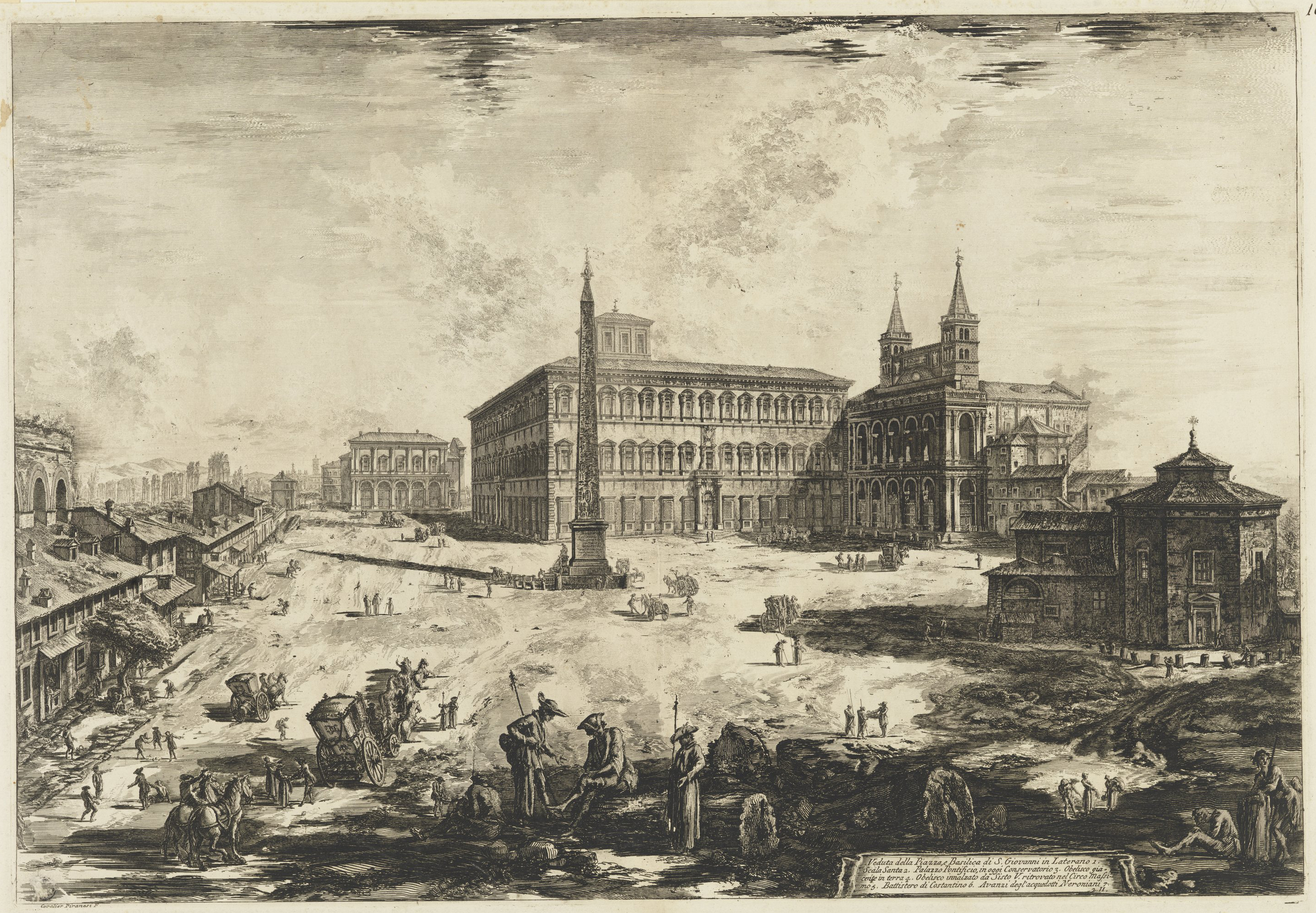 Pietro e il vaticano questa tarda tavola delle vedute di roma risulta in antitesi con la visione monumentale e moderna della basilica del laterano offerta da piranesi in molte altre occasioni qui la veduta isola in uno spazio aperto le architetture trasformate dal radicale intervento urbanistico operato sotto sisto v. Lucchesi ingegnere idraulico e poi con l architetto palladiano g. La basilica di san giovanni in laterano o cattedrale di roma nome completo papale arcibasilica maggiore cattedrale arcipretale del santissimo salvatore e dei santi giovanni battista ed evangelista in laterano in latino archibasilica sanctissimi salvatoris et sanctorum ioannis baptistae et ioannis evangelistae in laterano è la cattedrale della diocesi di roma attualmente retta. La stampa è una tiratura francese intermedia 1807 1835 nel terzo stato di quattro hind 122.