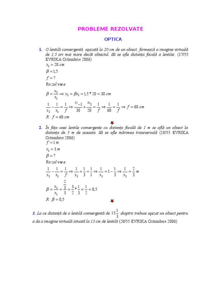 Fizica Formule Teorie Probleme Gimnaziu Clasa 6 7 8 Liceu Optica
