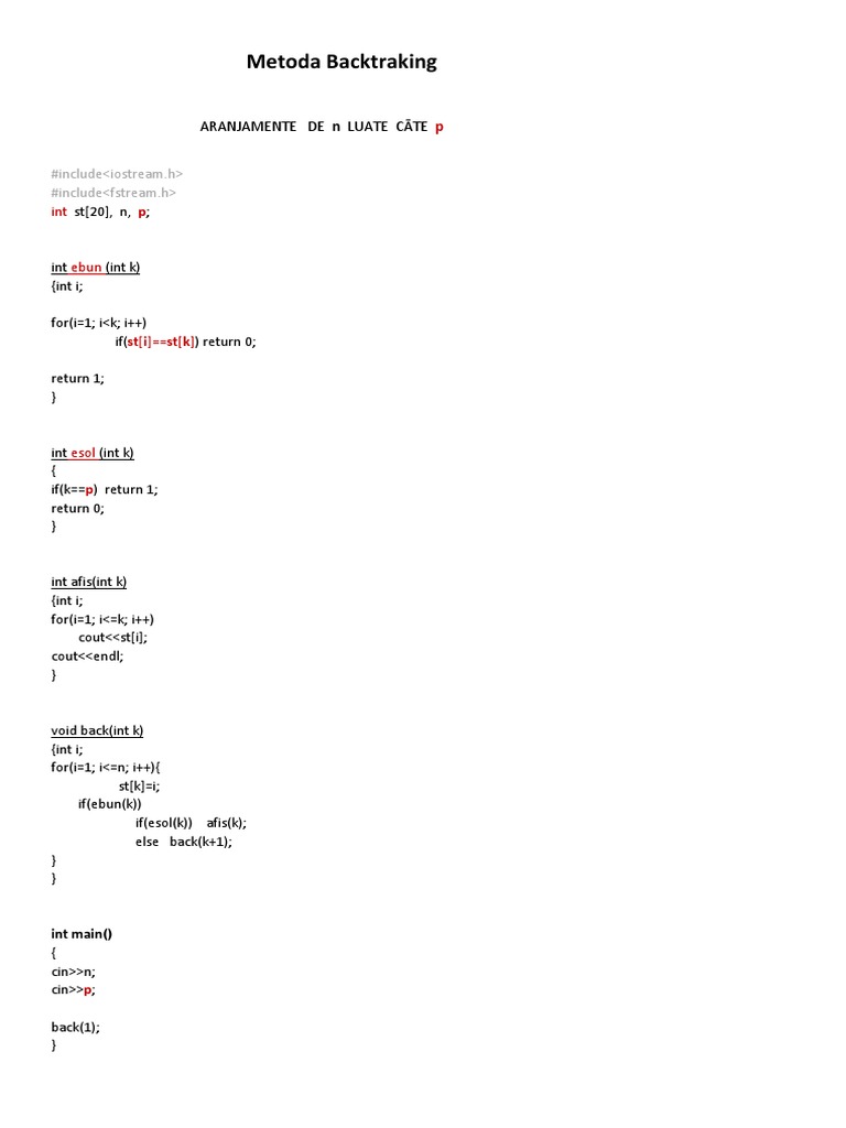 Metoda Backtraking C
