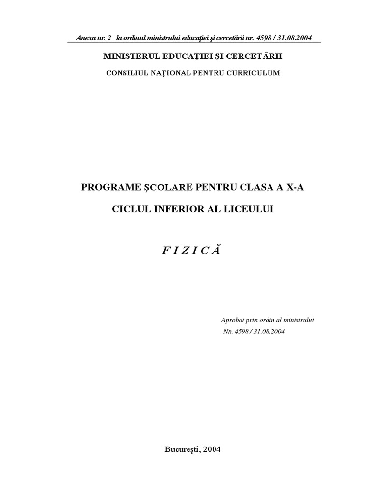 Programa Scolara Pentru Fizica Clasa A X A