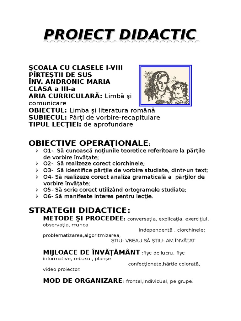 Proiect Didactic Parti De Vorbire Consolidare Doc