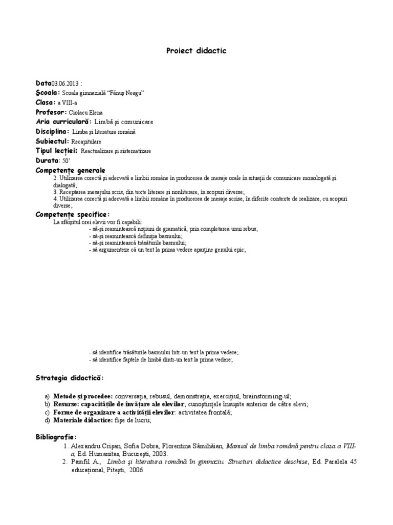 Doc Proiect Didactic Iulia Anca Academia Edu