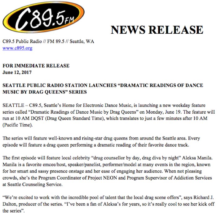 C89 5 Public Radio On Twitter News Release Dramatic Readings Of Dance Music By Drag Queens On C89 5