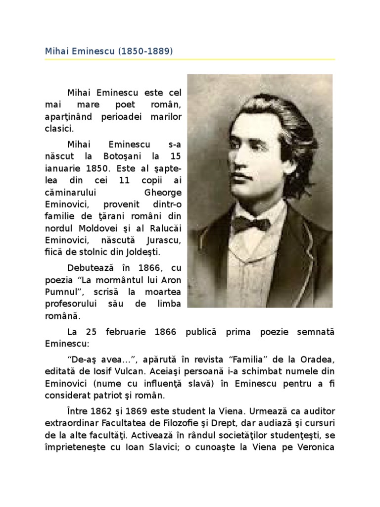 Biografia Lui Mihai Eminescu Referate Pentru Tine
