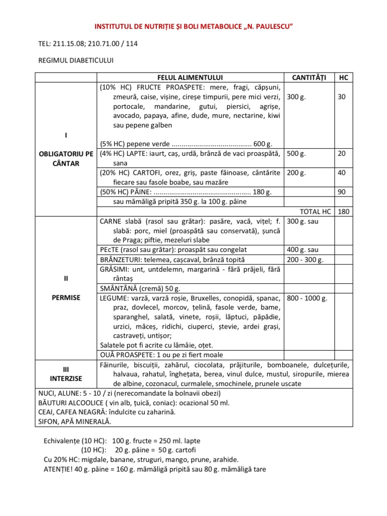 Regimul Diabeticului N Paulescu