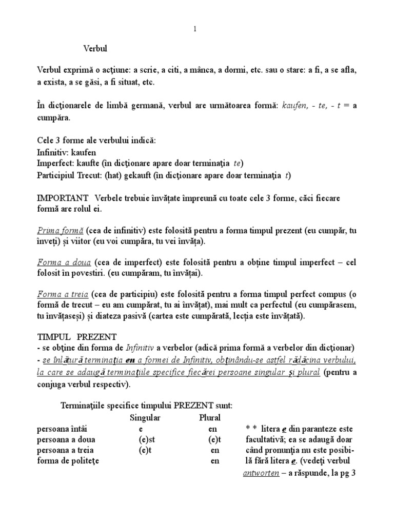 Părțile De Vorbire Verbul Conjugarea Verbelor Timpul Timpul Prezent Invață Germană Fără Profesor