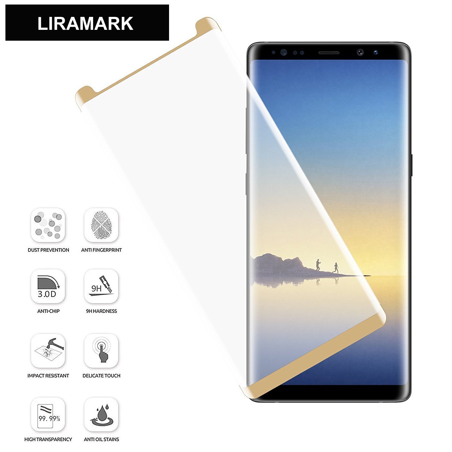 Samsung Galaxy Note 8 Full Cover Edge To Edge 3d Liramark Military Grade Gold Colored Anti Scratch Tempered Glass Gold Color Amazon In Electronics
