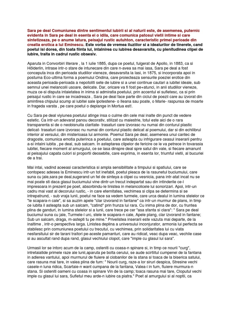 Referat Sara Pe Deal Mihai Eminescu 338667 Graduo