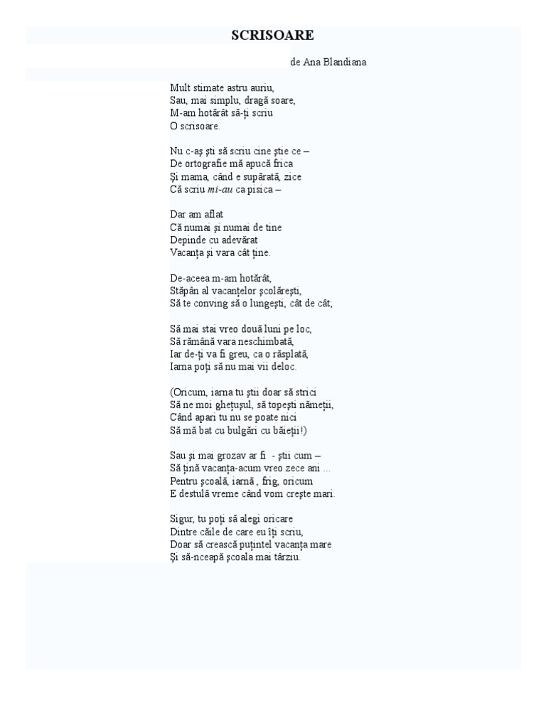 Completează Enunturile Urmatoare Care Se Refera La Poezia Scrisoare De Ana Blandiana In A Brainly Ro