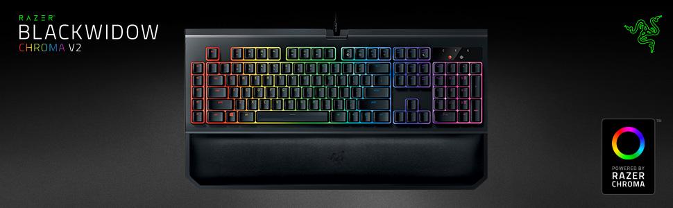 Amazon Com Razer Blackwidow Chroma V2 Esports Gaming Keyboard Ergonomic Wrist Rest 5 Dedicated Macro Keys Razer Green Mechanical Switches Tactile And Clicky Computers Accessories